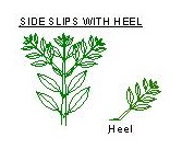 Side Shoots: Small side shoots and young growth from the base of the plant can also be taken , this applies to all bushy, herbaceous and tall shrubby species. Often these are best taken with a heal – this is when you carefully break the shoot off the main stem, a small piece of the stem will stay with the shoot – see diagram.