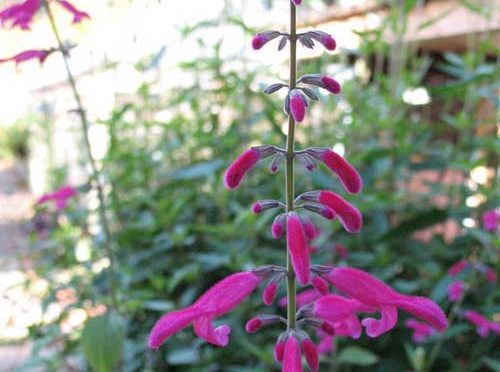 This a medium sized Salvia, growing to approx 1.2-1.5mH, with long linial leaves. This is a upright plant, making a good sized clump, well suited to the middle or back of the garden bed. It makes a good mid level screening plant to screen the fence or the neighbours.