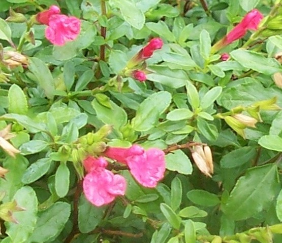 S. ‘Baby Sage (microphylla): A small rounded bush 40cmH, a tough hardy small shrub for full sun. Ideal for a large pot on a balcony, patio or edging along a path. Both flowers and leaves are small, making it perfect for shaping into a bun / dome.