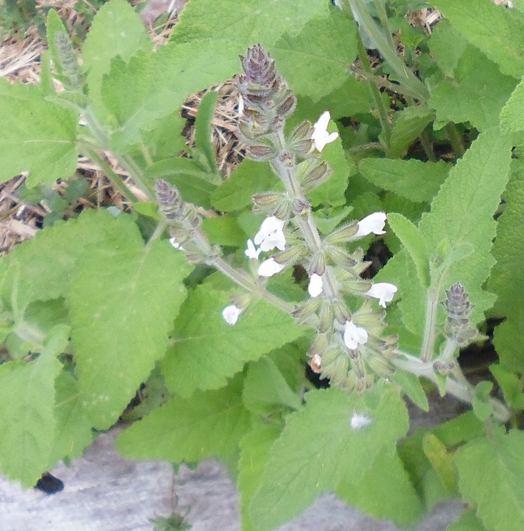 S. disermas ‘Slimline’ :syn rugosa: A small clumping plant for a hot sunny position. Numerous flower stems with small white flowers in whorls. A favorite with bees and insects. Slim green / grey leaves, slightly hairy with soft crenations along the edges. Tough and hardy.
