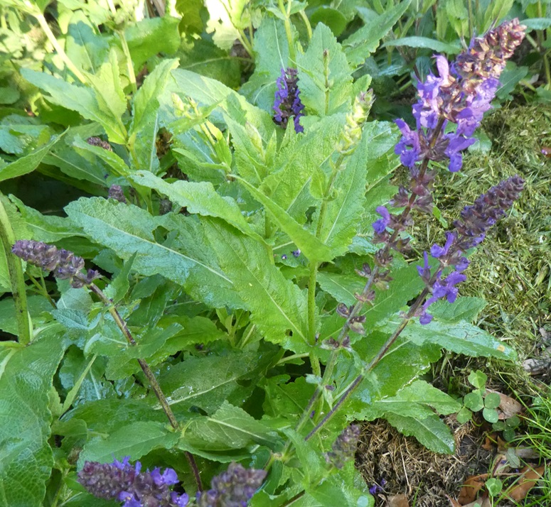 Salvia superba ‘Giovanni’: is a small herbaceous perennial, 40cmH with multiple stems of dark mauve/purple flowers in mid/late spring.Grow in a sunny position as a path border.