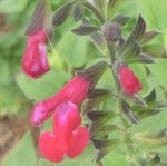 Salvia ‘Alegria’ : ( darcyi x microphylla) Is a small subshrub 60cmH. A seedling X between S. darcyi and microphylla parents, with large crimson flowers for full sun.