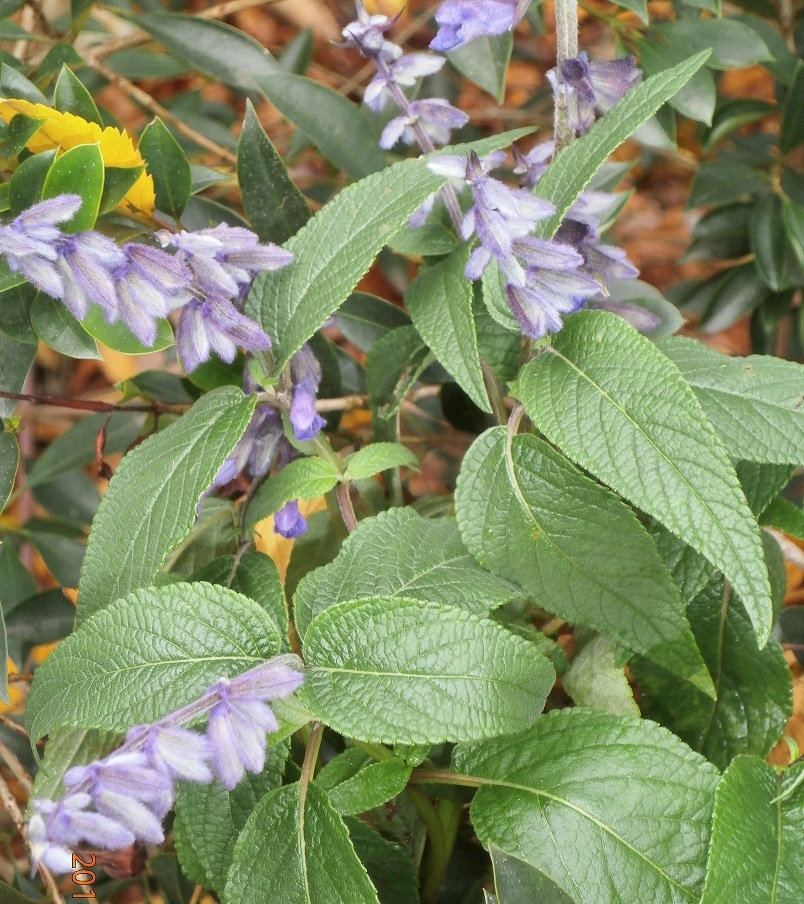 Leaves: are a mid green, not as slender as S. leucantha, but not as wide as ‘Anthony Parker. All stems are well clothed.