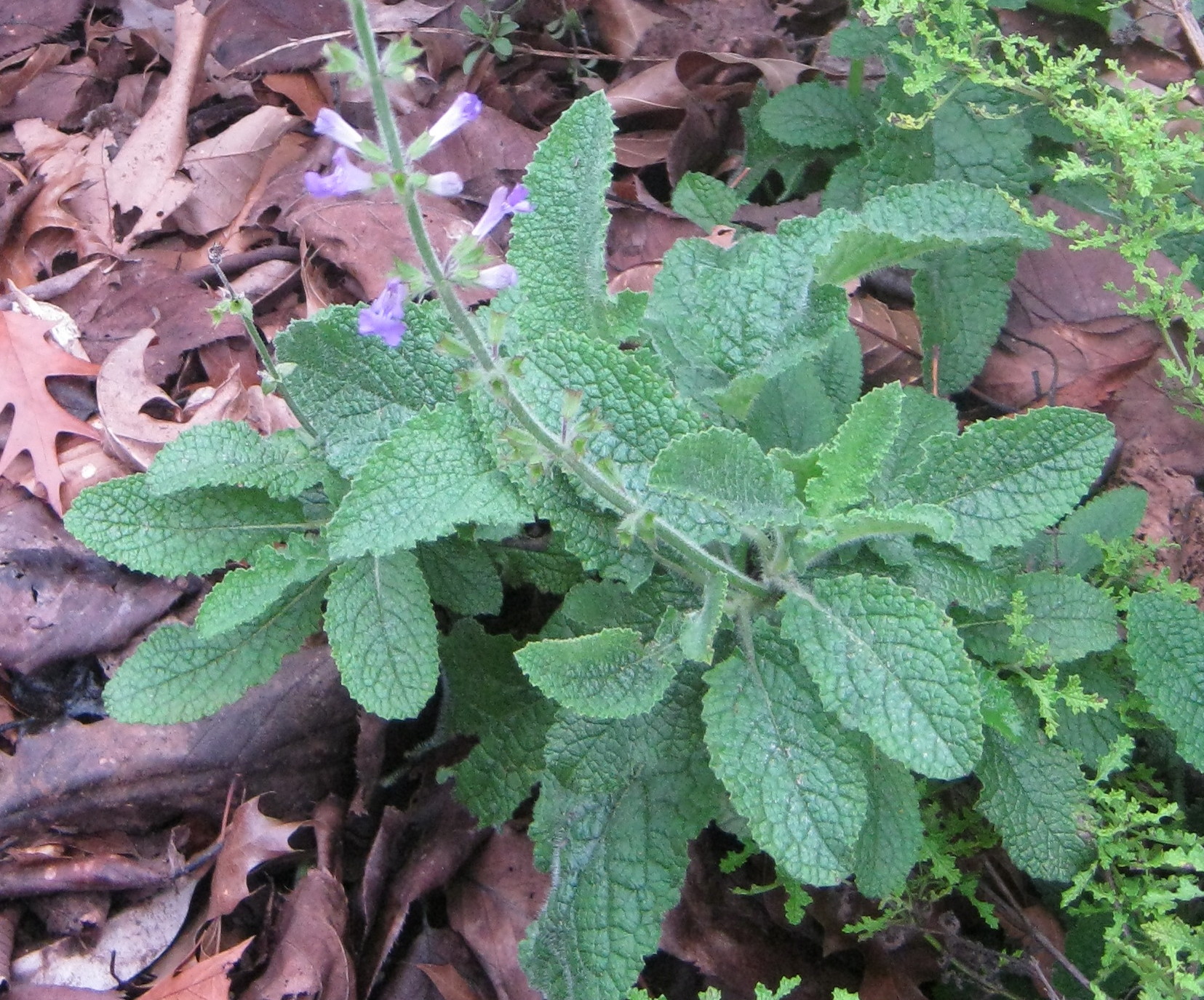 Salvia aurita var aurita: will gradually expand to form a good ground cover masse for a hot spot in full sun where nothing else grows.