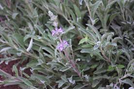 Flowers: are small, a light lavender / mauve colour. Each of the bottom lobes are flared out with the stigma and stamens very exerted. Each flower is held in a compound whorl which contains numerous flowers. The flowering stems may be 12 -15cm long, each with whorls all along the stem with good spacing between. These whorls of flowers stand well above the foliage to attract passing pollinating insects. Flowering from late spring, well into autumn.