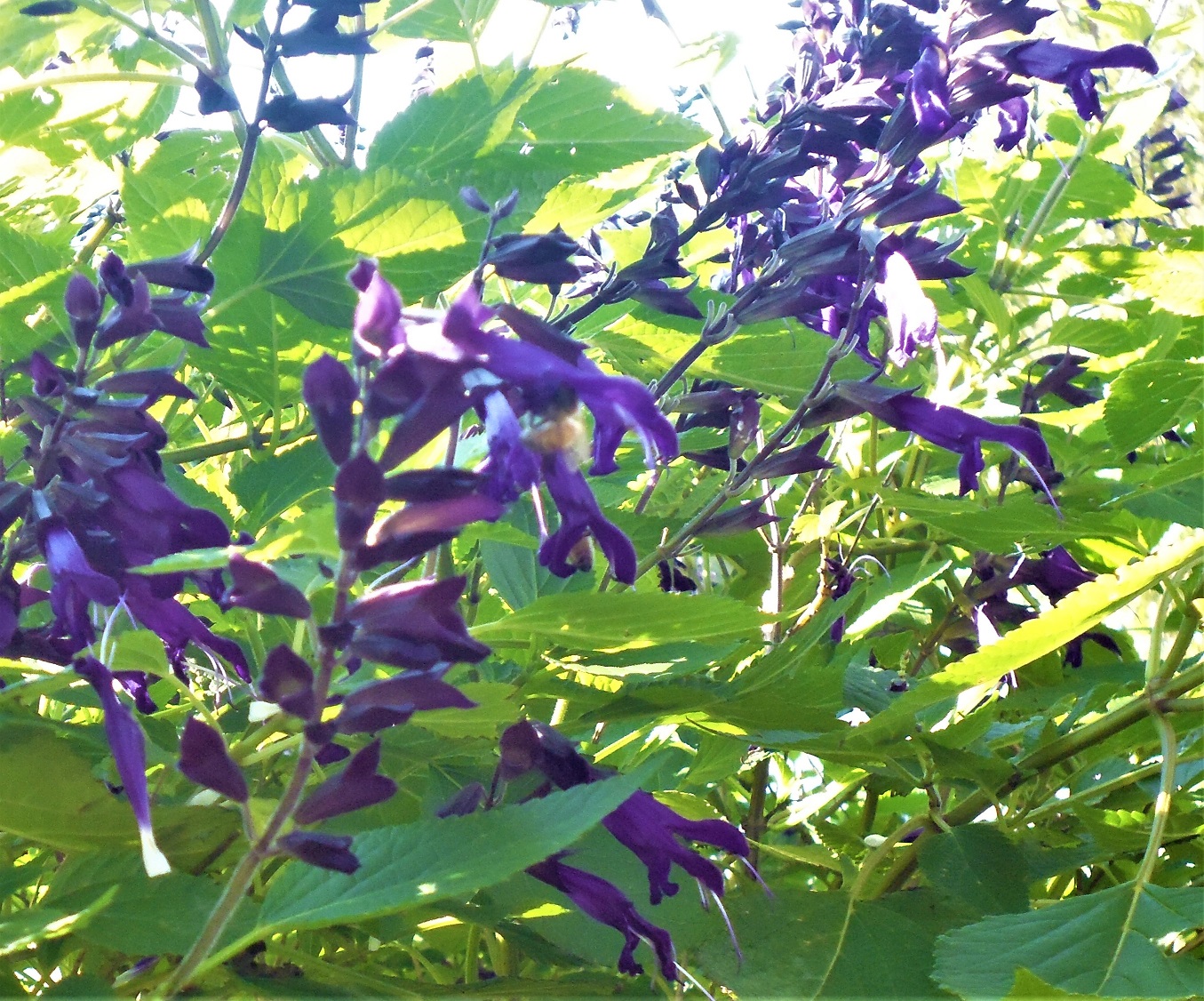Flowers: are a dark violet purple, tubular with a large corolla, held above the foliage in short panicles. Flowering late summer, through autumn and can continue through winter into spring. Little birds love this Salvia as they can rest and hide in the branches while feeding on the flowers.