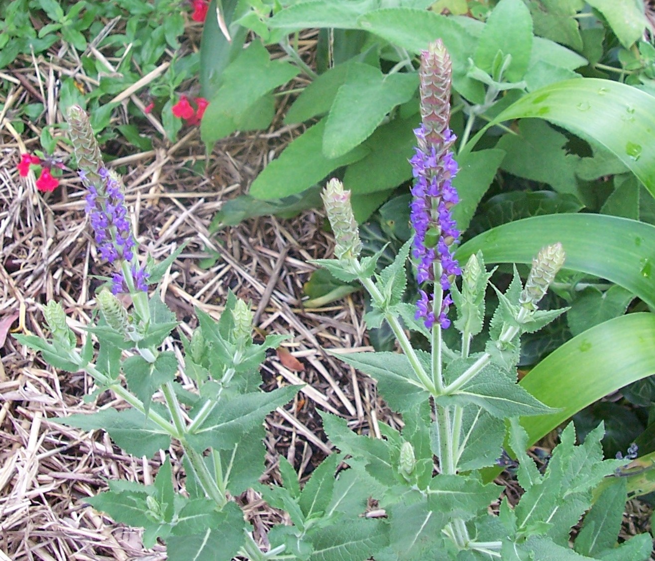 Salvia ‘Blauhugel’: plants are quite stunning when in full flower, especially if the clumps are allowed to grow to encompass the edge of the bed. You can hear the bees humming around the flowers. A good tough plant if mulched and planted in good manured composted soil.