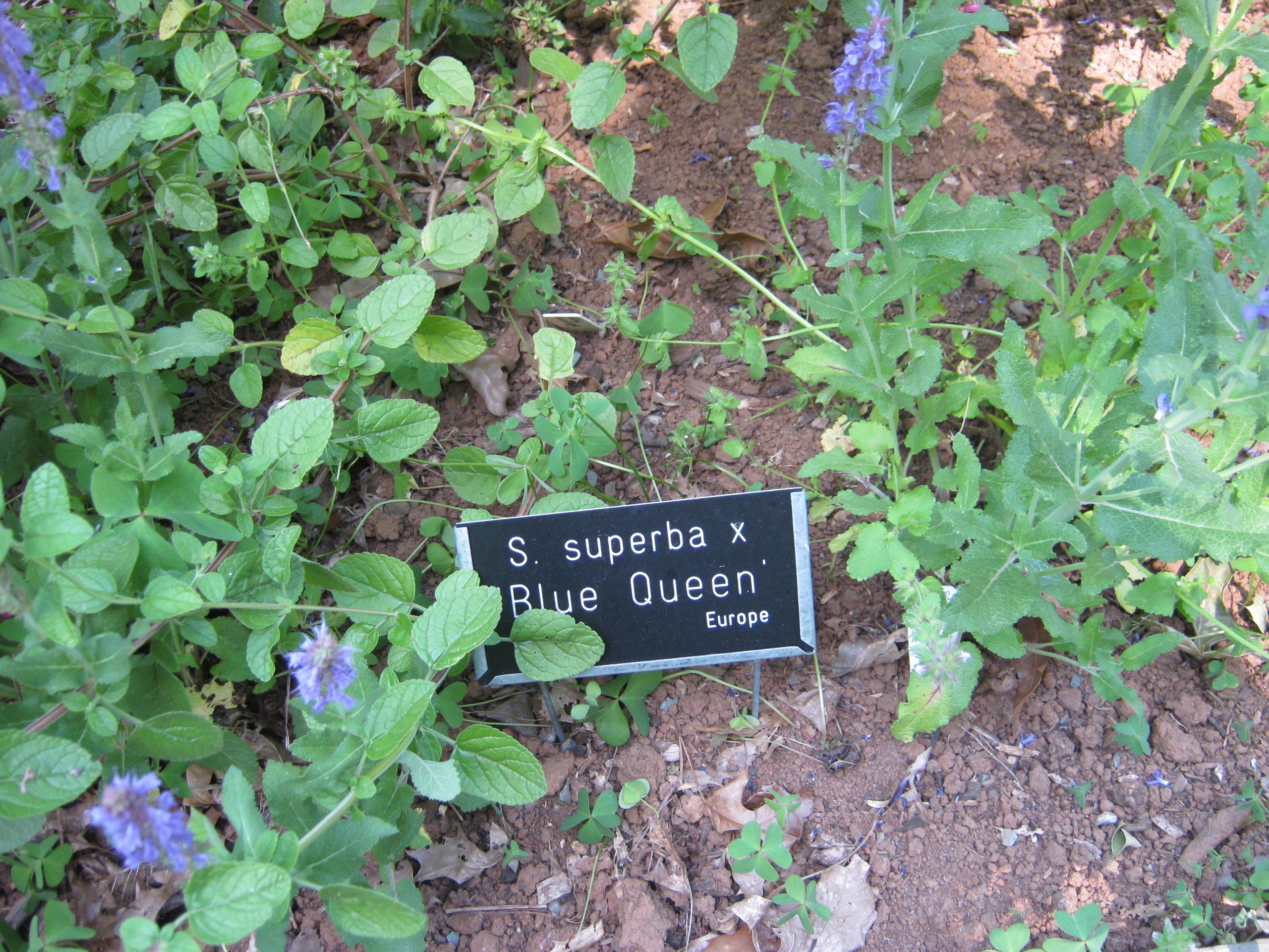 Salvia ‘Blue Queen’ (superba): is an old variety of low growing herbaceous Salvias, growing to 20 cm H.with basal rosettes and spires of blue flowers in summer.