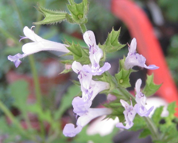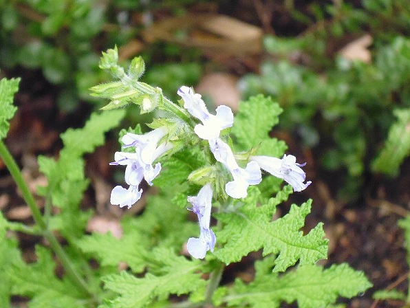 Salvia ‘Boundary Creek’: is a small, upright shrub, 80-1m H, found in a local garden with lobed leaves and mauve tubular flowers.