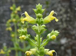 Salvia campanulata: is a herbaceous Asian Salvia, growing 20 cm tall with interesting hastate shaped leaves and yellow flowers in autumn.