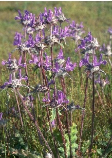 Salvia carduacea: is an annual growing 20-30cmH.in the full sun on poor soil with blue thistle like flowers in spring and summer.