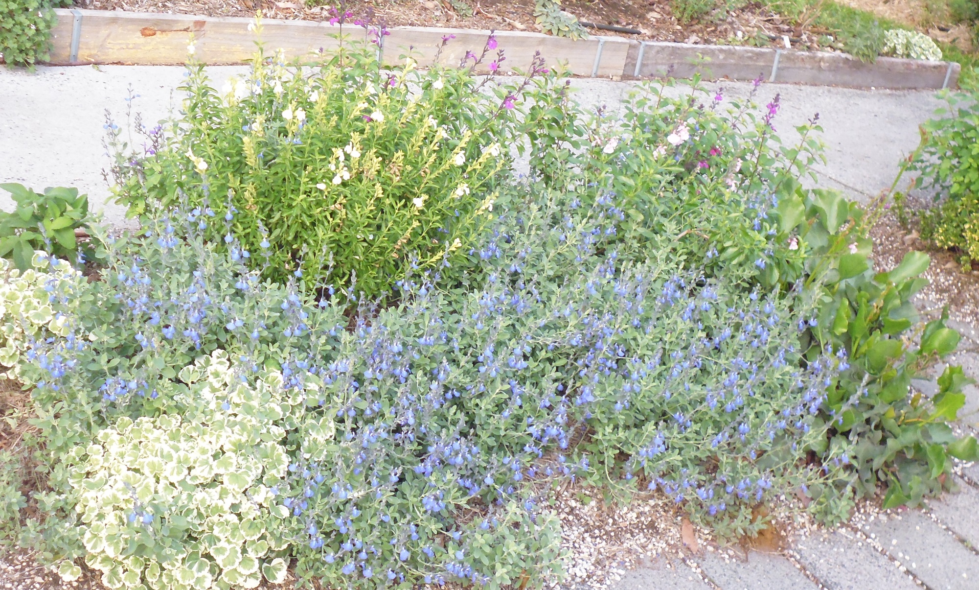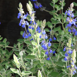 Salvia chamaedryoides: is similar to Salvia ‘Marine Blue’, but is a groundcover with small grey leaves.
