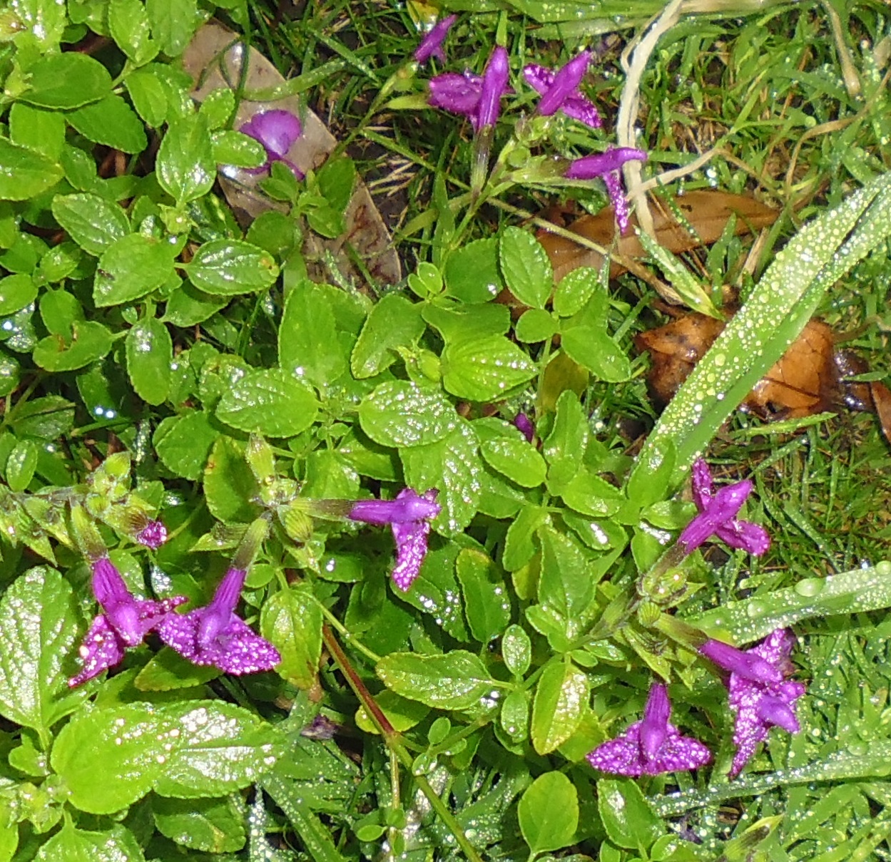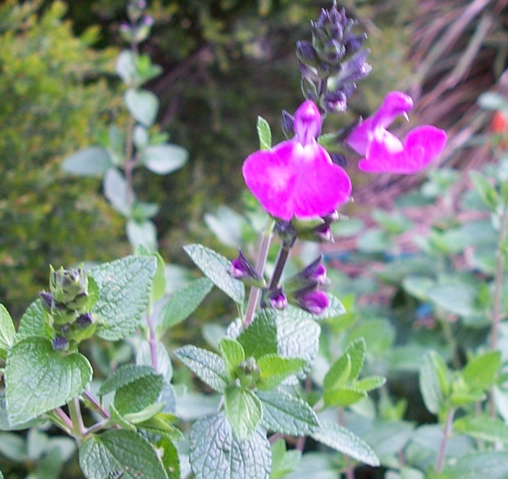 Salvia ‘Christine Yeo’ : A small leaf shrubby spreading perennial to 20cm H. with mauve /purple flowers, flowering in Summer and Autumn.