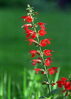Salvia coccinea: An upright open shrub 60-80cm H, with bright red vermillion flowers for most of the year for a sunny position.