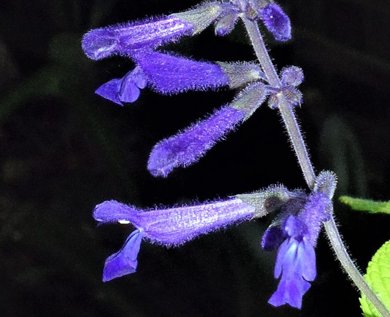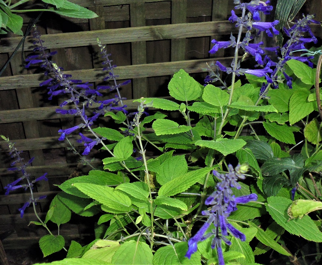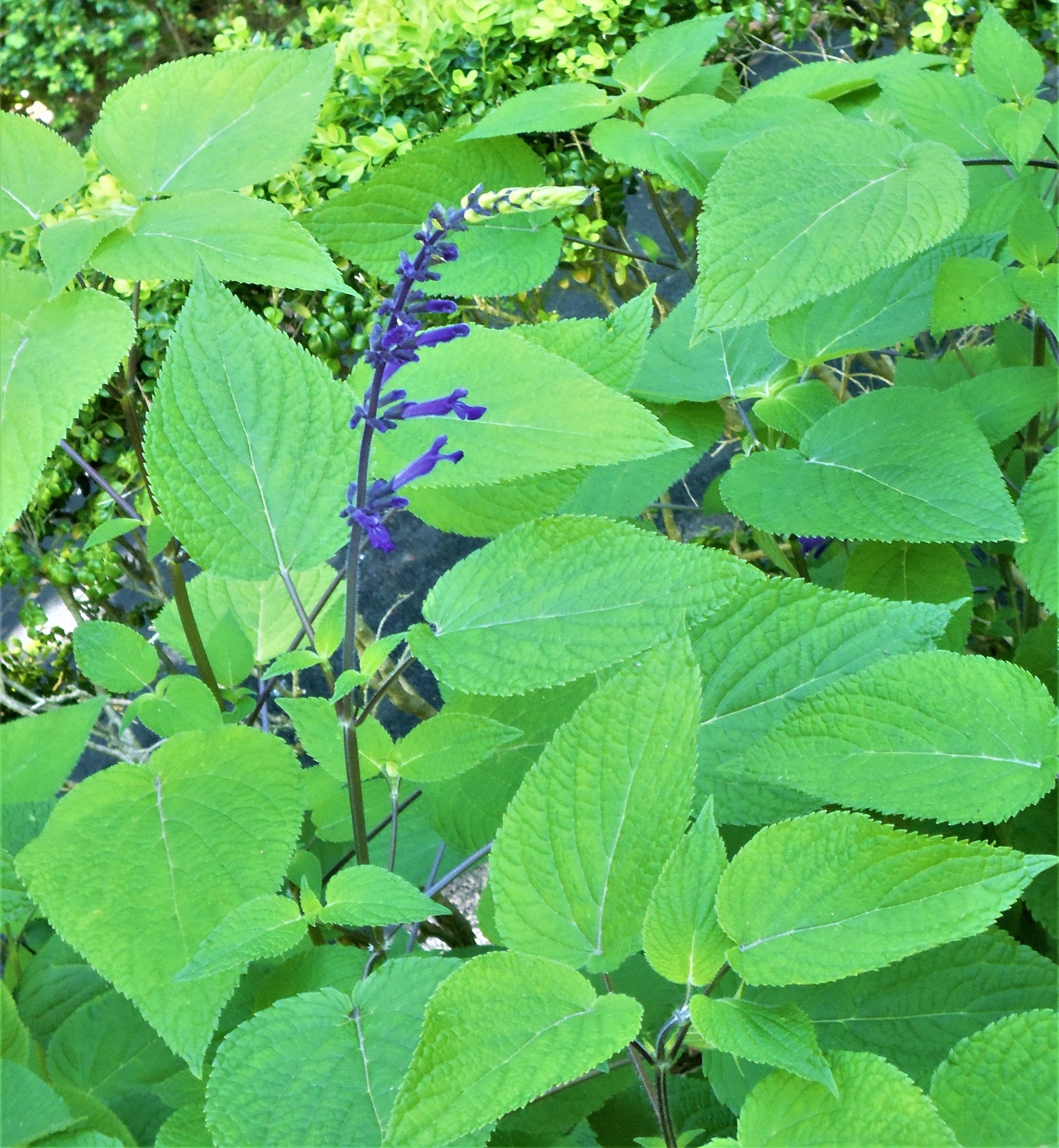 Salvia concolor: a tall bushy shrub, 2-3m H, enjoying a semi shaded position with bright purple flowers in winter.