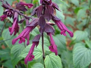 Salvia ‘Desley’: can flower during the colder months to make a great show of flowers, but needs protection from Frost – under trees, by warm brick walls or among other hardy shrubs or in a pot that can be moved.