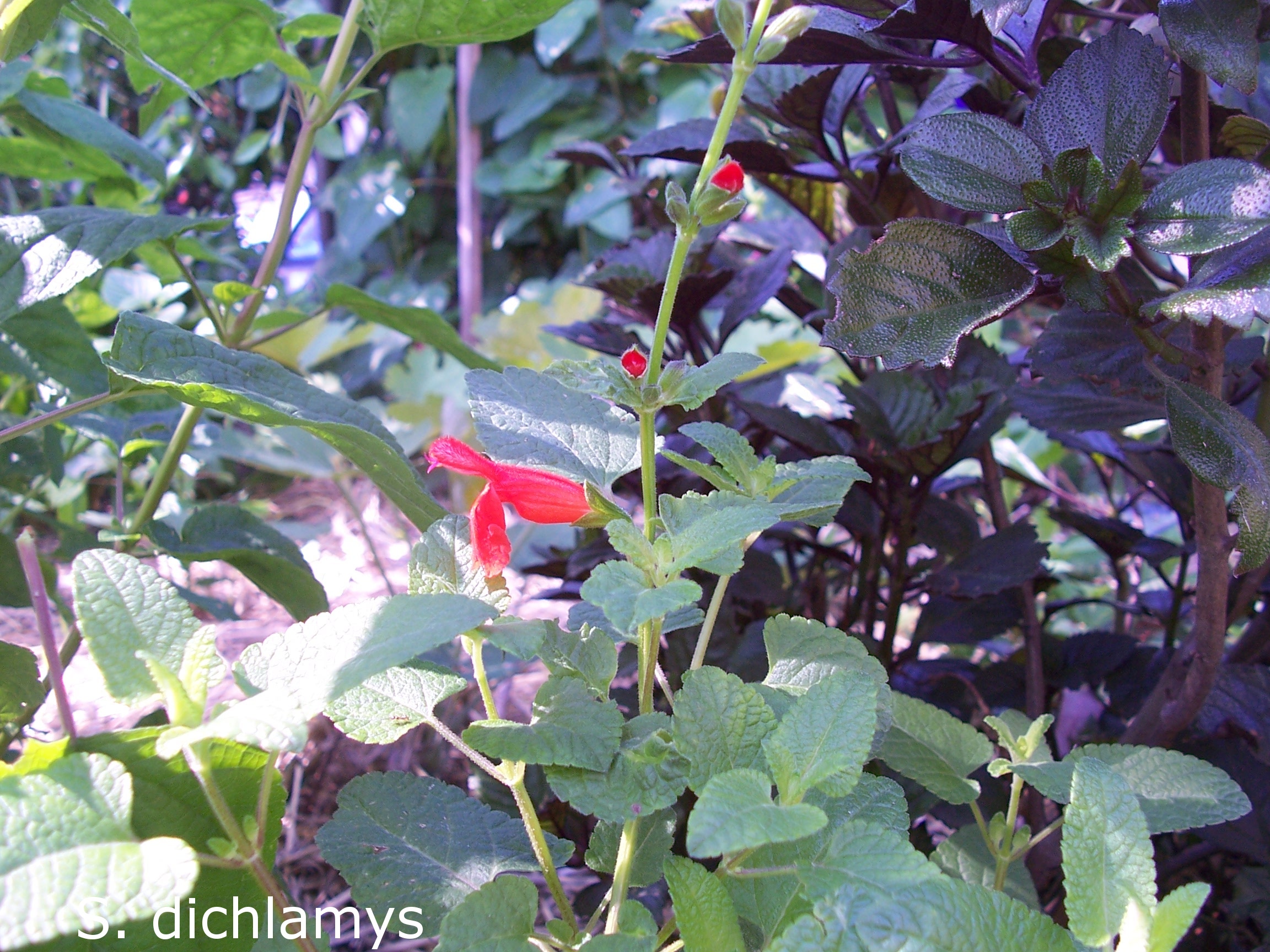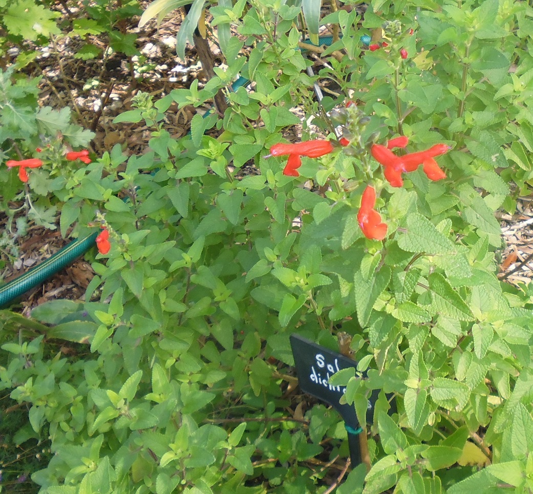 Salvia dichlamys: A small subshrub 40-60cm H for a sunny position with bright vermilion flowers during summer.