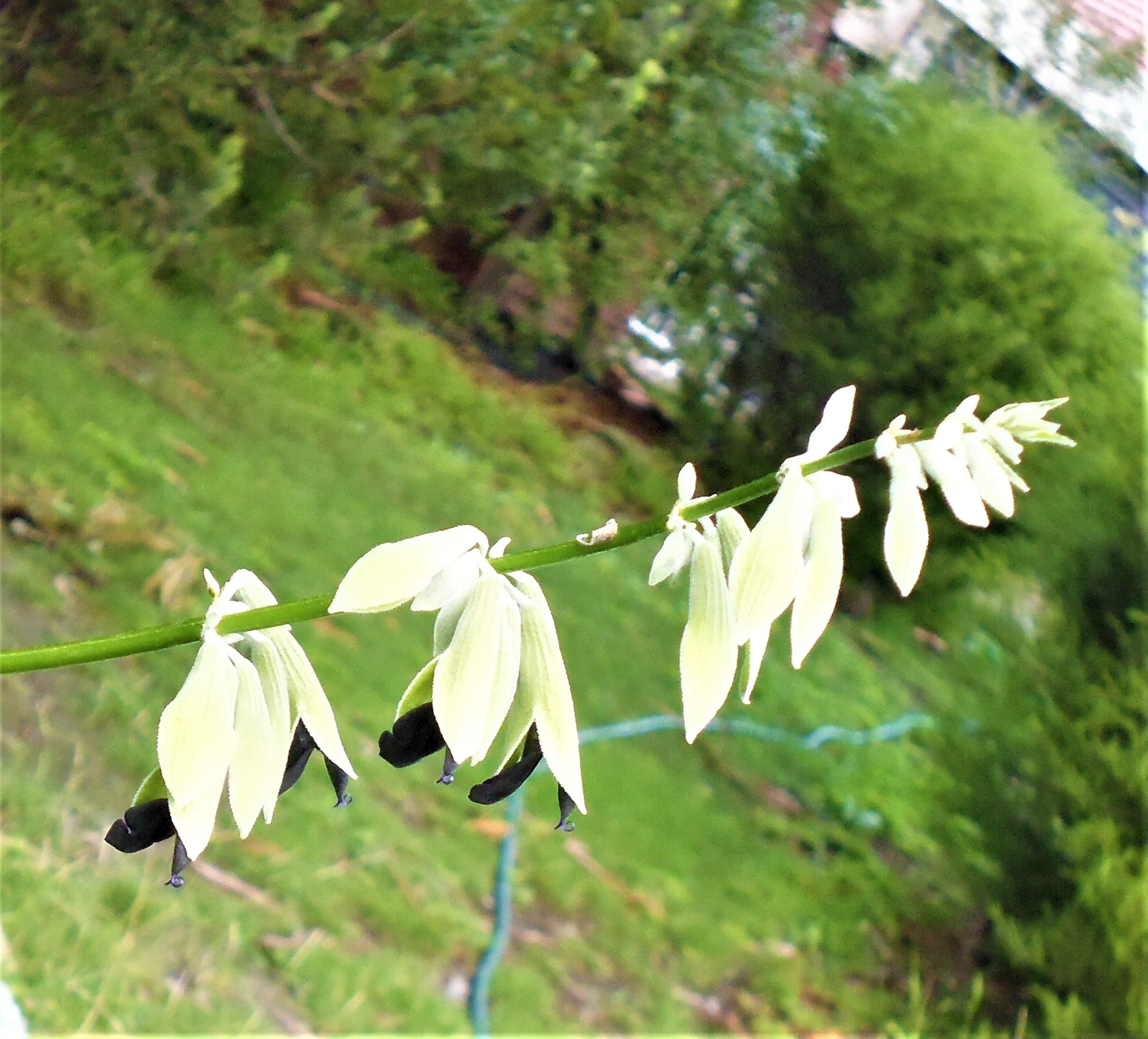 Flowers are produced on a long thin, green arching stems that are extremely sticky ( attracting pollinating insects) in whorls of 4-6 flowers at regular intervals along the stem, all hanging downwards.