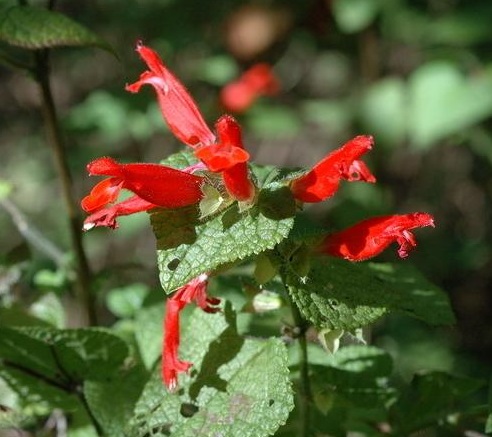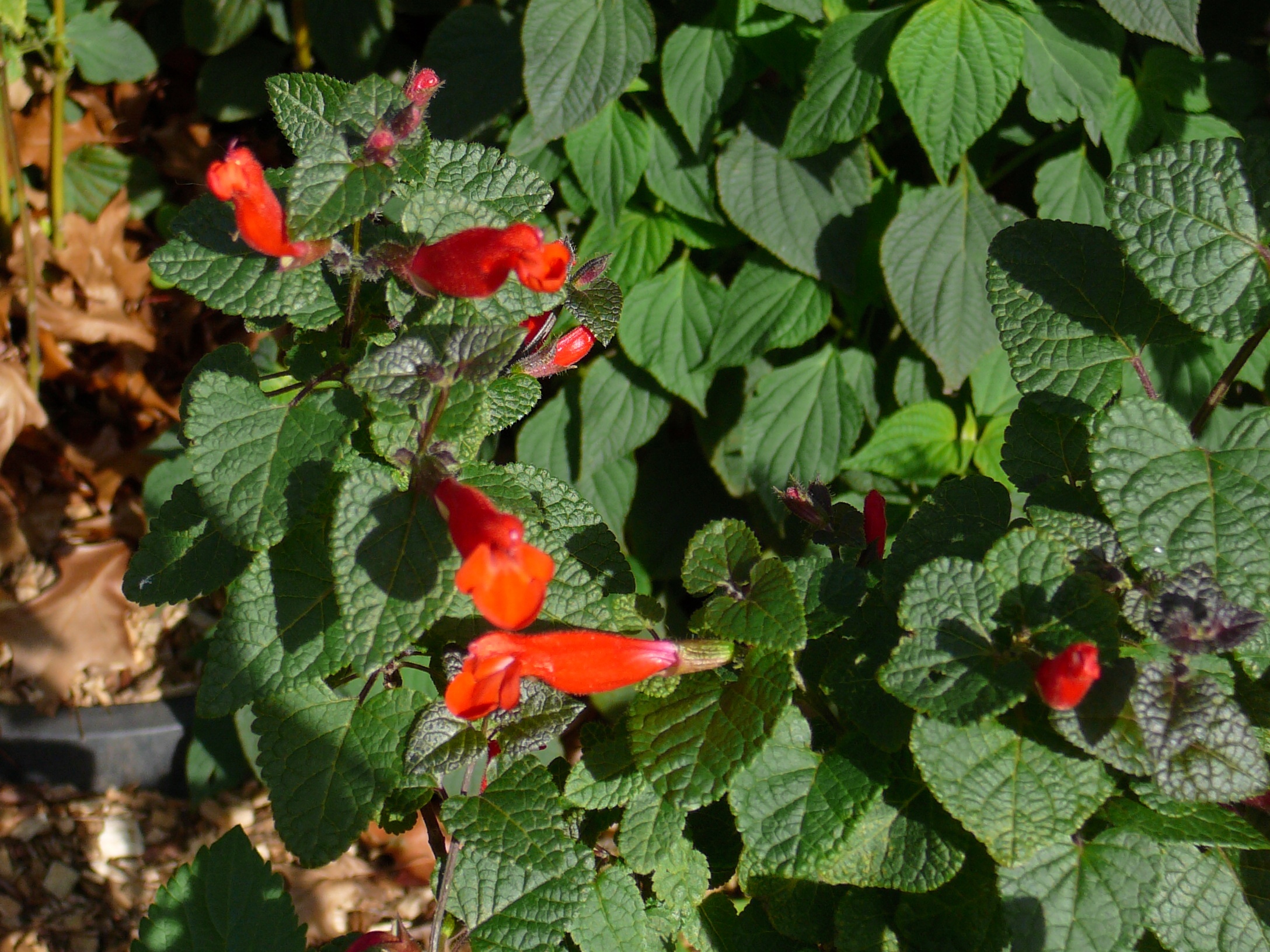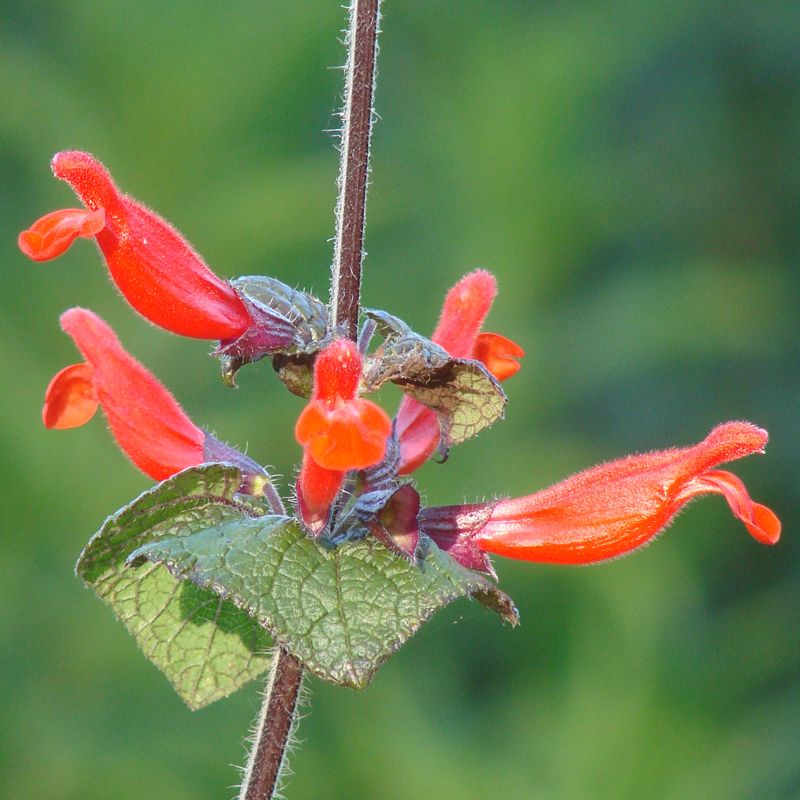 Salvia disjuncta: An interesting upright slender clumping perennial 1-1.2m H with bright red flowers in late winter and heart shaped leaves.