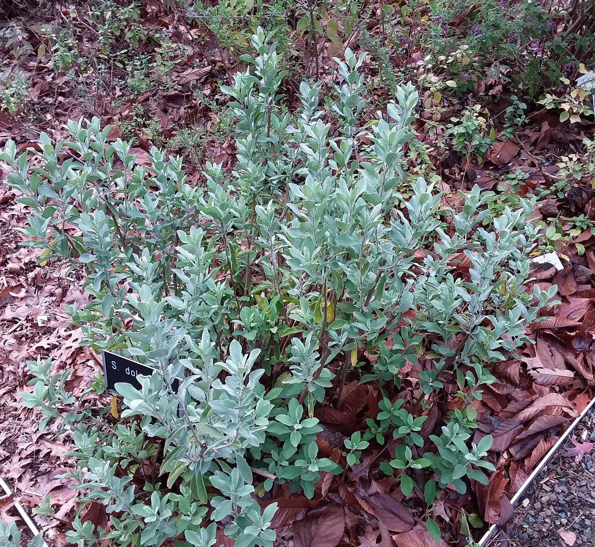 Salvia dolomitica: has a perennial shrubby habit, growing up 1m H and wide, forming a good clump. A lovely grey shrub to use as a contrast or as a focal point. Ideal in a grey themed garden. Very bee and insect friendly.