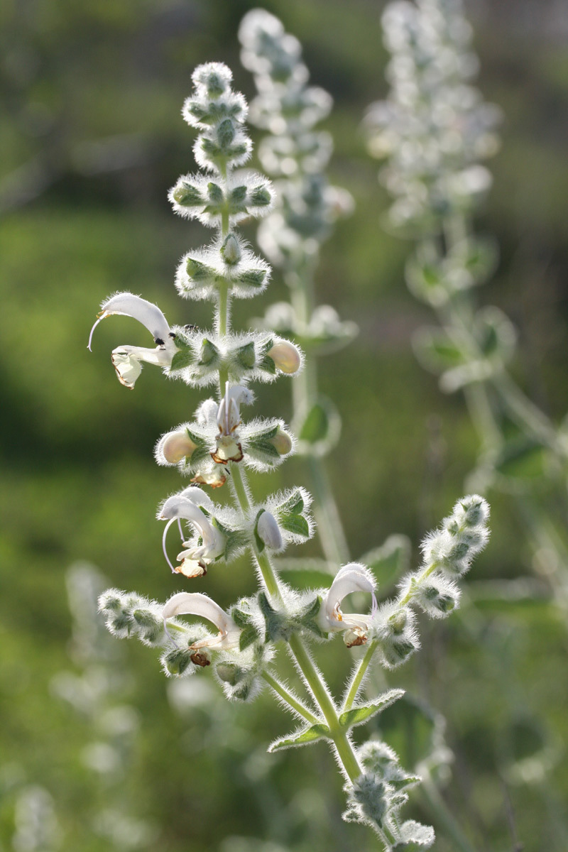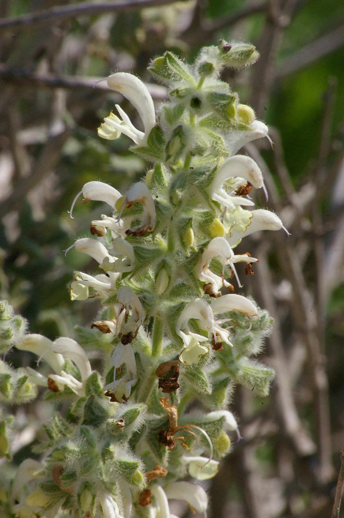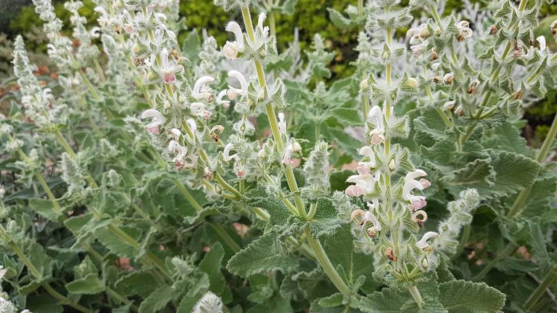 Salvia dominica: A tough hardy small shrubby perennial from the Middle East & Mediterranean 60 – 80 cm H with white flowers in summer.