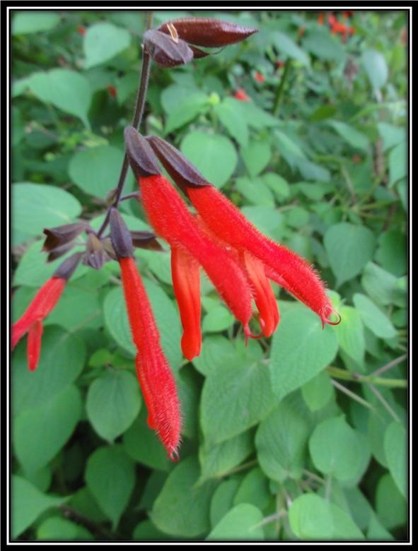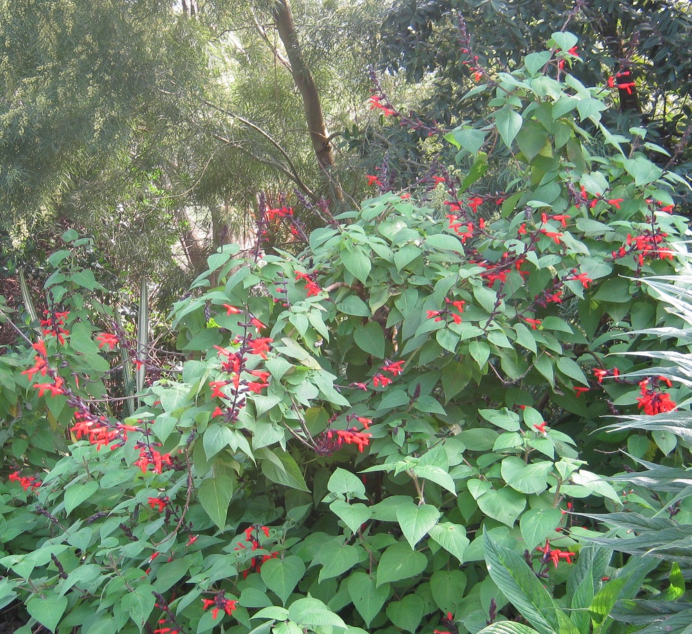 Salvia gesneriiflora ‘Tequila’: is a tall spreading winter flowering Salvia 2-3mH with large red flowers and black calyces.