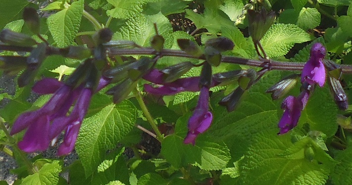 ‘Amistad’ is another very similar Salvia that differs from S. ‘Glenda’s Purple’ in the leaf colour, veinage and the colour of the calyces, which are purple.