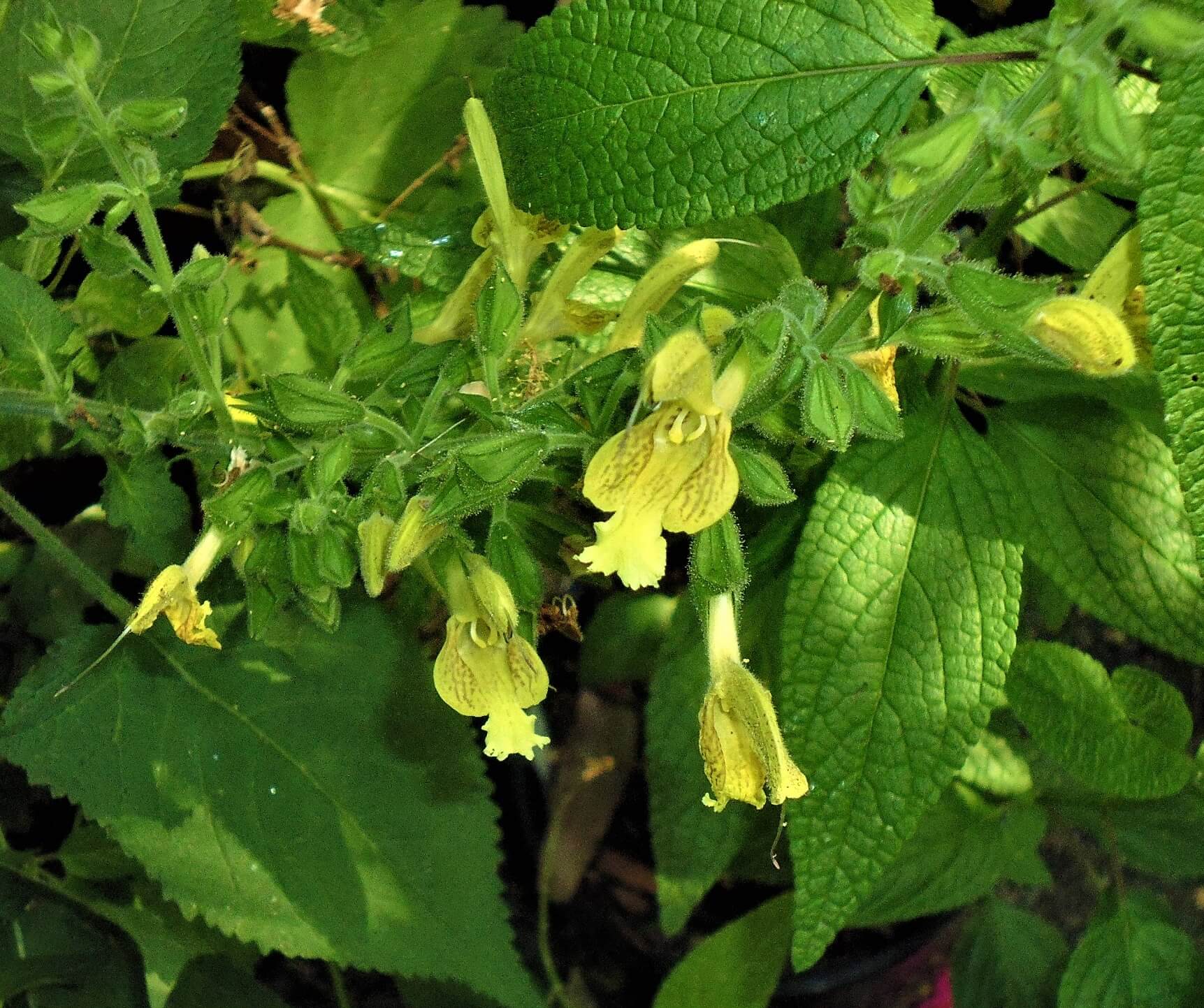 Salvia glutinosa: is a small herbaceous perennial, 20-30cm H with hastate shaped leaves and pale yellow flowers in autumn.