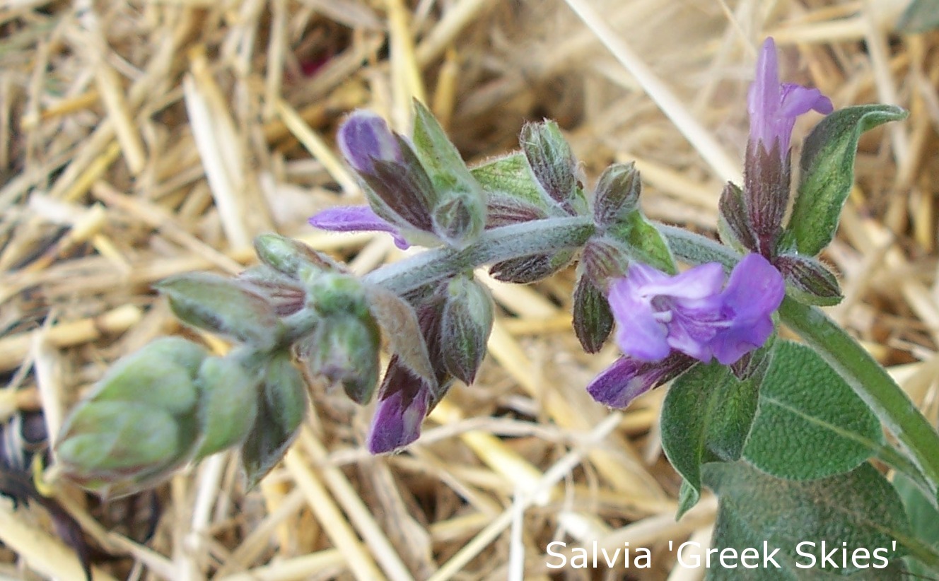 S. ‘Greek Skies’ grows very well during the winter months, often putting on new growth during this period, where as Salvia officinalis “Goes Off” during the colder months, often becoming mildewy.
