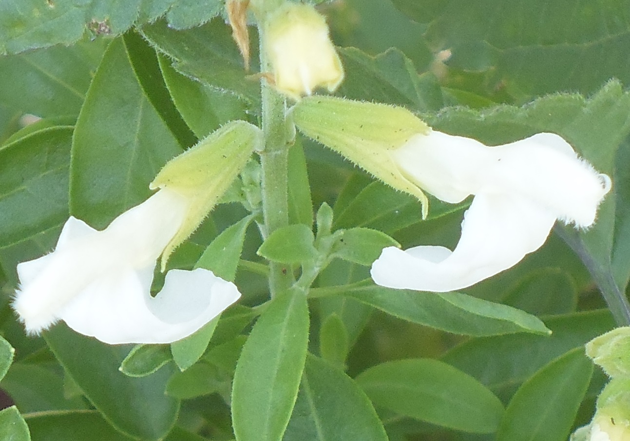 Salvia ‘Alba'(greggii): A small upright, dense subshrub to 40cmH with white flowers, for a sunny position. Flowering all year.