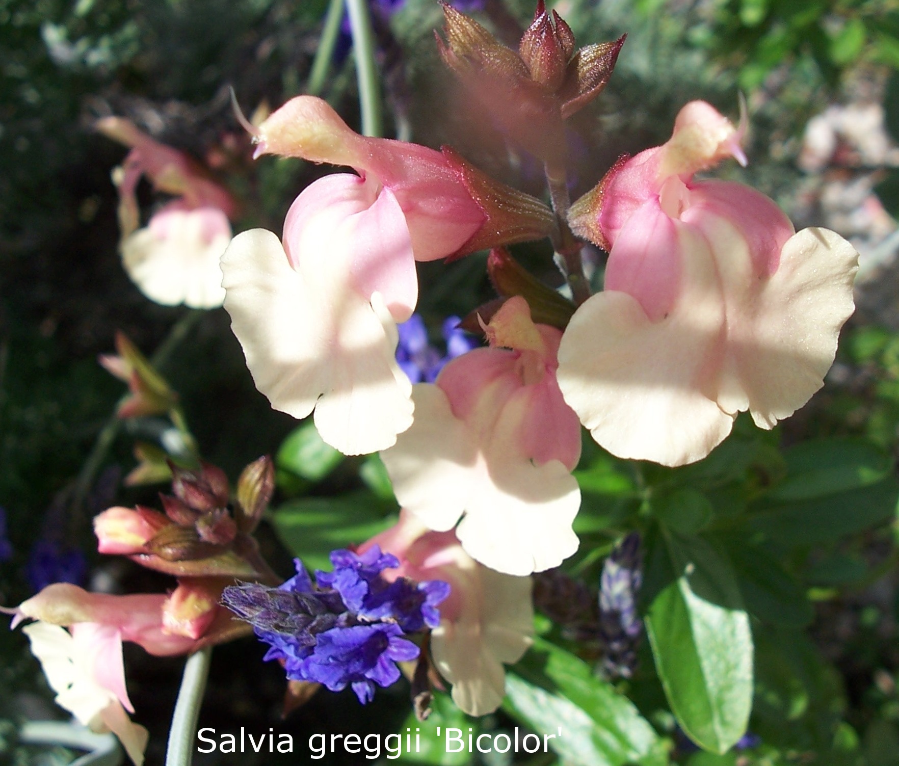 Salvia greggii bicolor : A lovely small open dense shrub, 60-80cmH for a sunny position with gorgeous cream and pink bicoloured flowers.