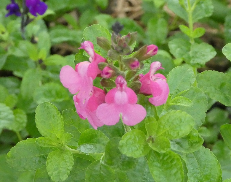 Salvia ‘Happy Pink’: is a bright small shrub for the front of the bed or for a mixed border. As this is a neat shrub, it can be grown along a path as an informal hedge as it clips well.