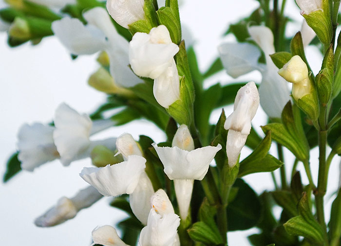 Grow this lovely Salvia in among other vibrant blues and  crimson coloured shrubs to act as a foil or grow it among other yellows and orange perennials to cool down the colour scheme. This Salvia also goes well with a pastel coloured scheme of planting. Being a pure white colour, it pairs and contrasts well with all those colours in the garden.