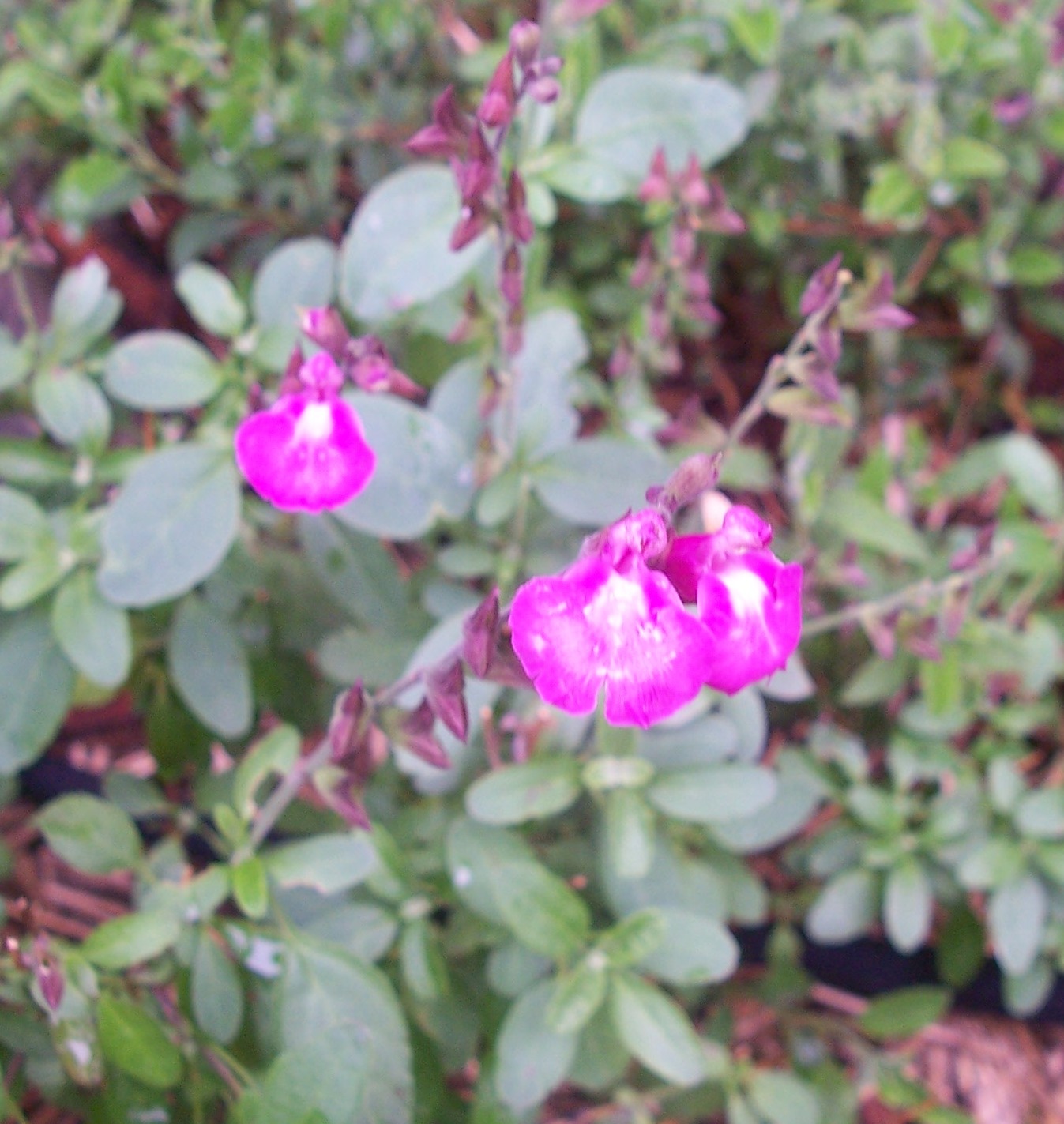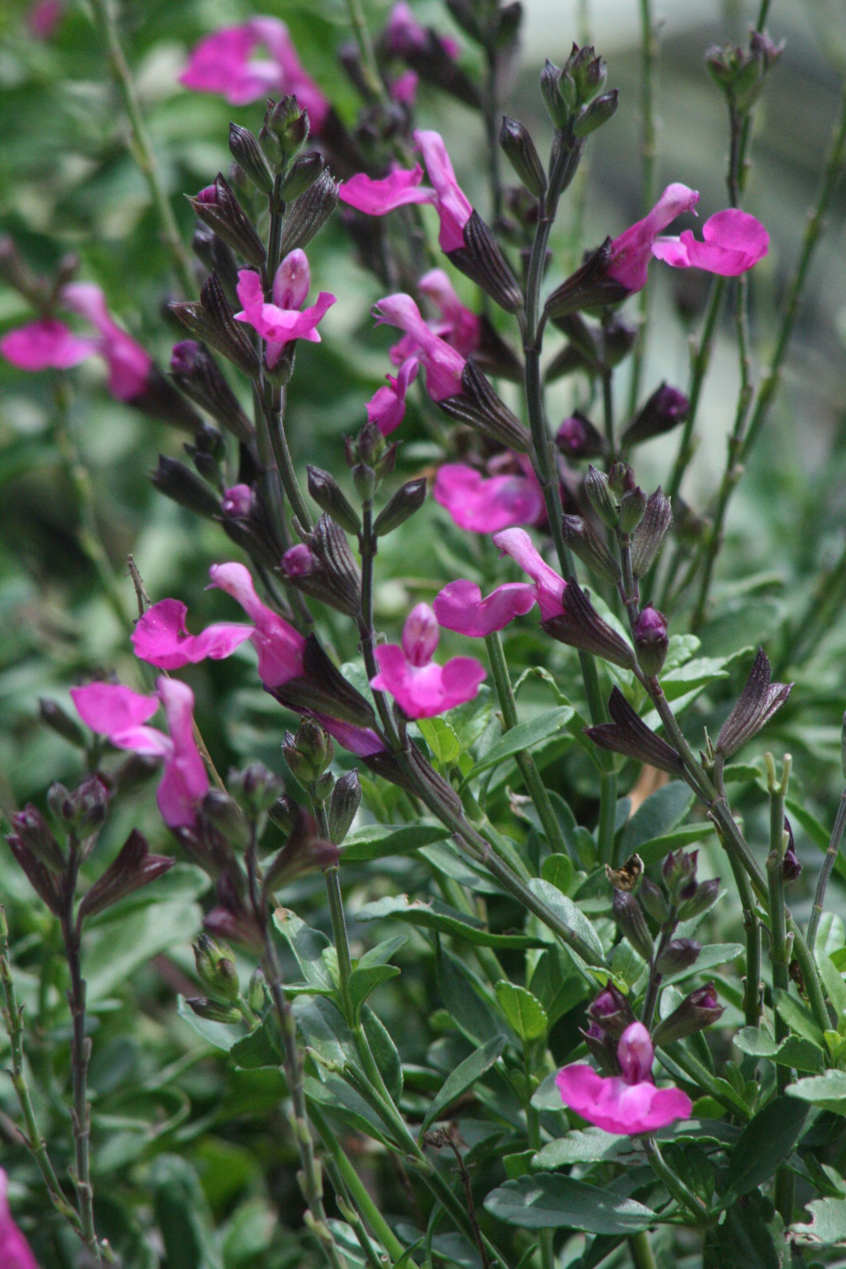 Salvia ‘ Heatwave Sparkle ‘ PBR (microphylla): A small subshrub, 40-60 cm H. A neat compact Salvia with sparkling bright pink flowers during spring and summer.