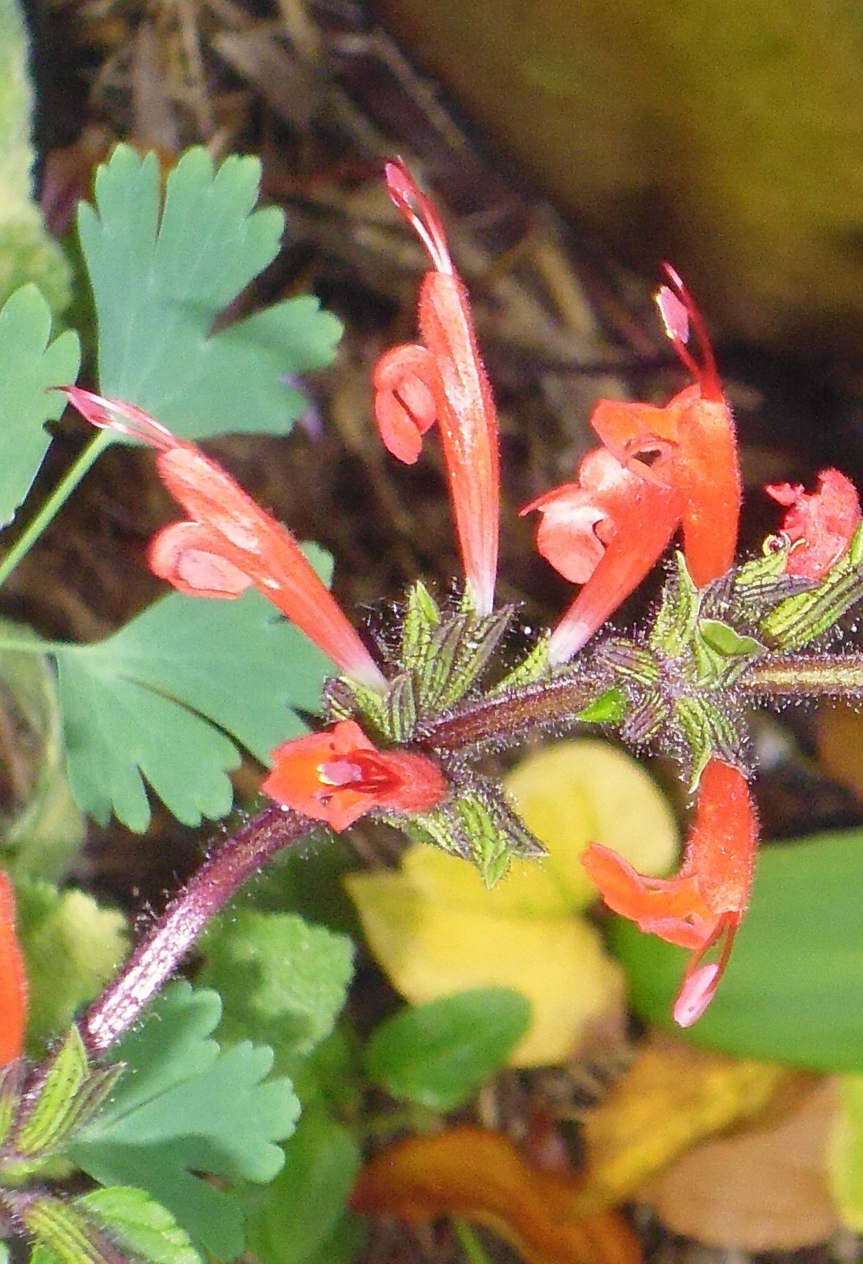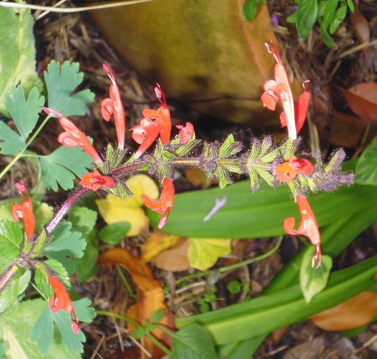 Salvia hirtella: is an evergreen perennial 30-60cm H, with a sprawling ground habit showing vermilion red flowers in summer.