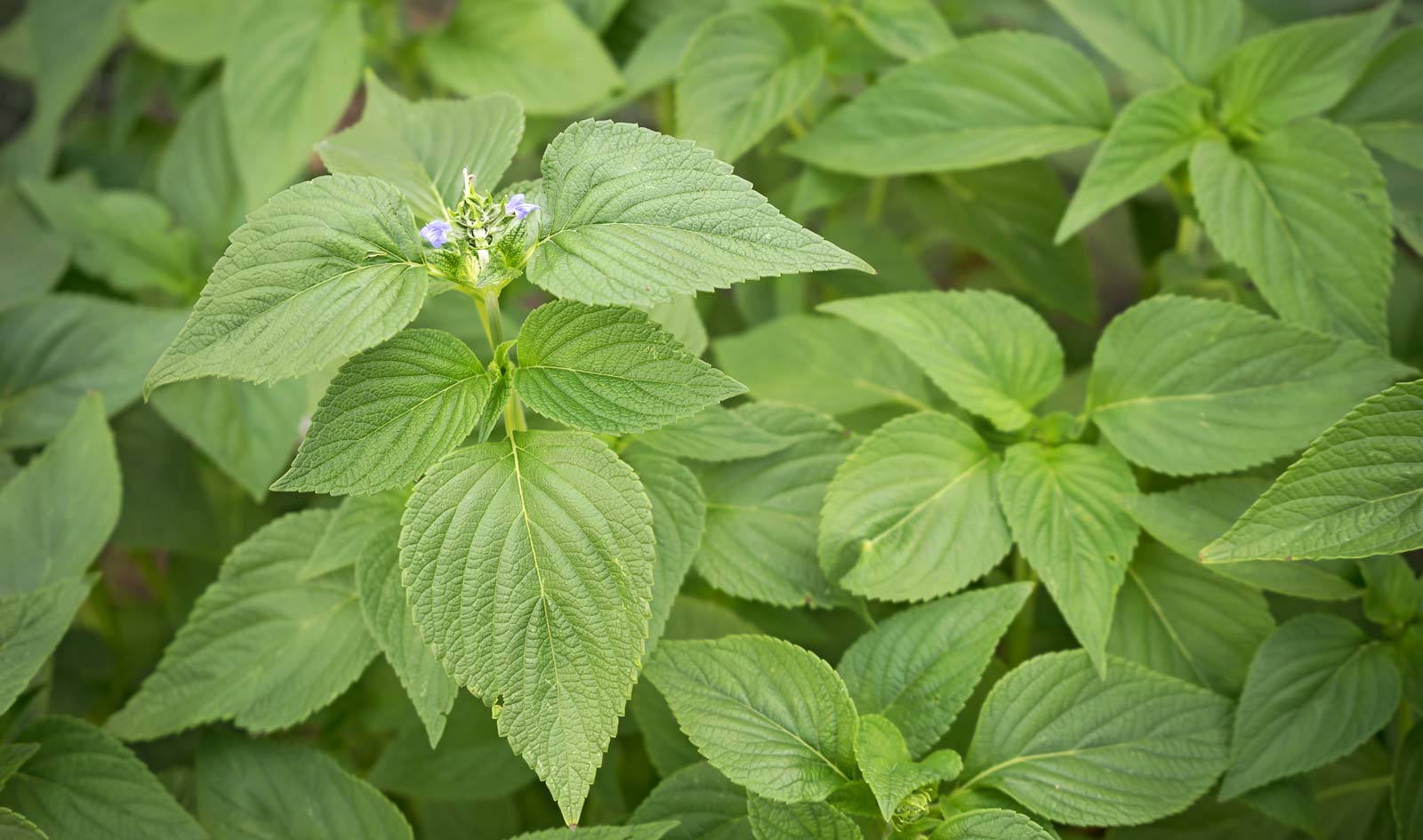 Leaves: are a bright midgreen, cordate in shape with an elongated apex. Thin textured, but heavily veined with small rounded crenations along the edges. Most leaves have are nicely fragrant.