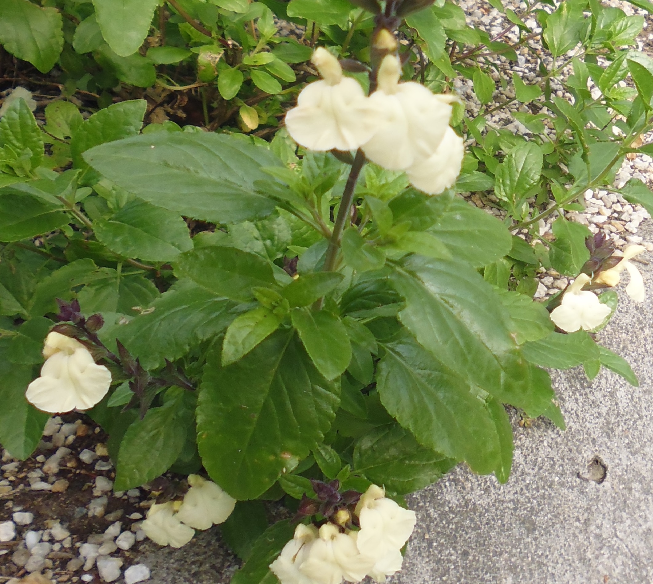 The dark calyx of Salvia ‘Iced Lemon’ makes a good contrast with the pale lemon coloured flowers.