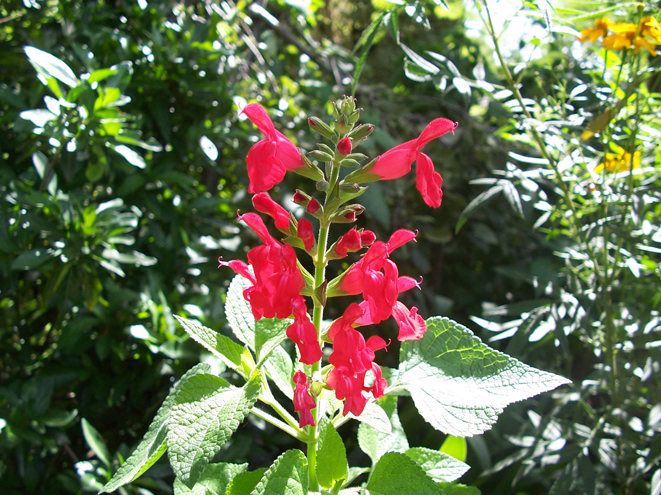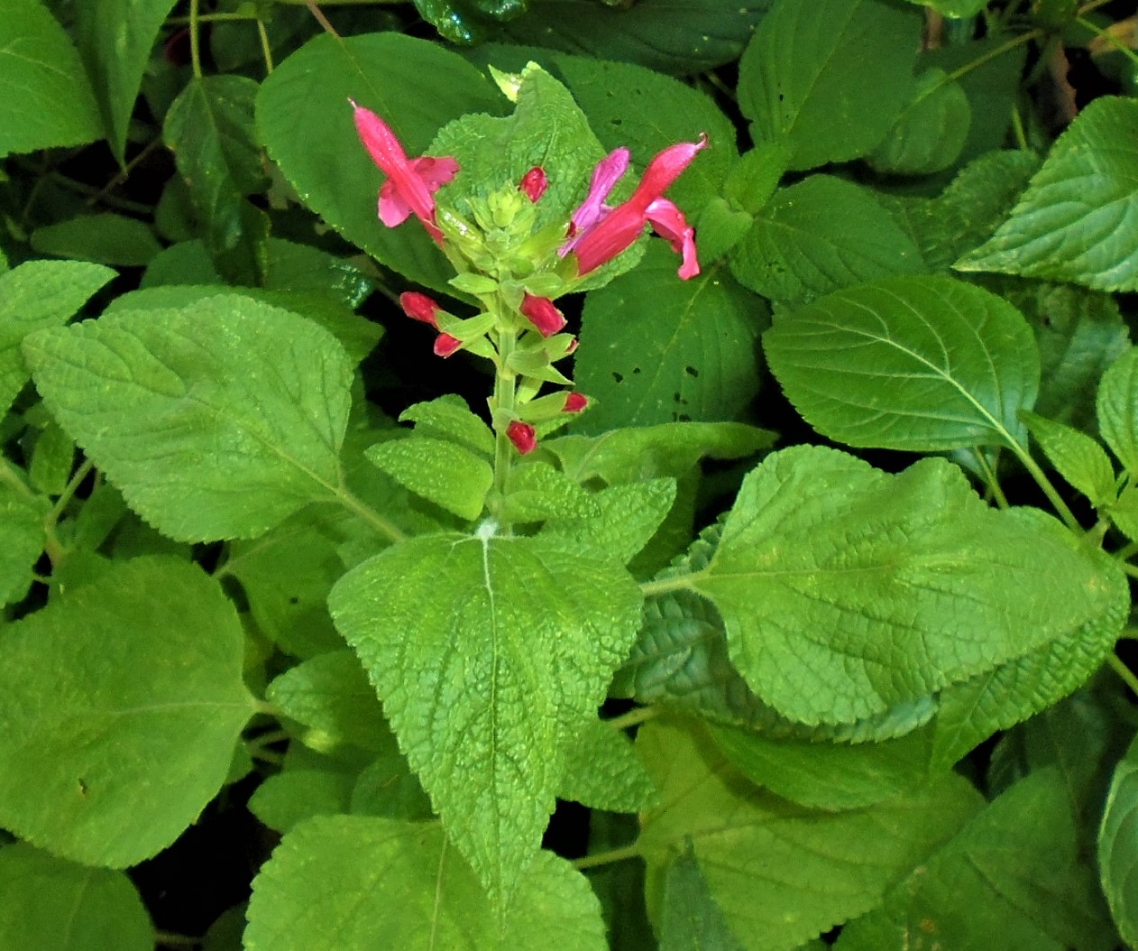 Salvia ‘Josh’: is a perennial cross between Salvia darcyi x microphylla. It shows the typical S.darcyi leaf.