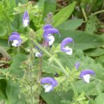 Salvia pratensis ‘Madeline’: is a herbaceous perennial forming a clump of rosette leaves with purple and white flowers in early summer, approx 60- 80cmH.