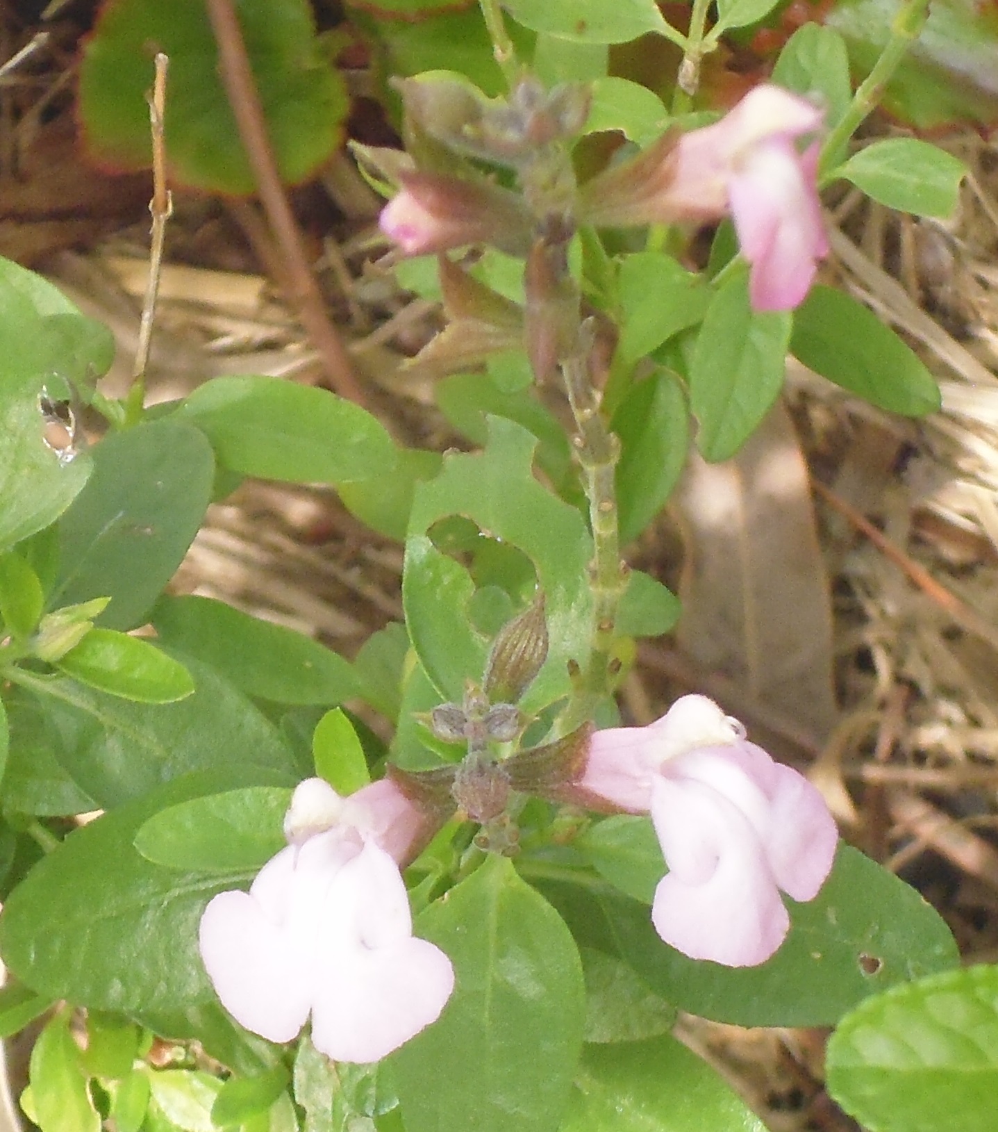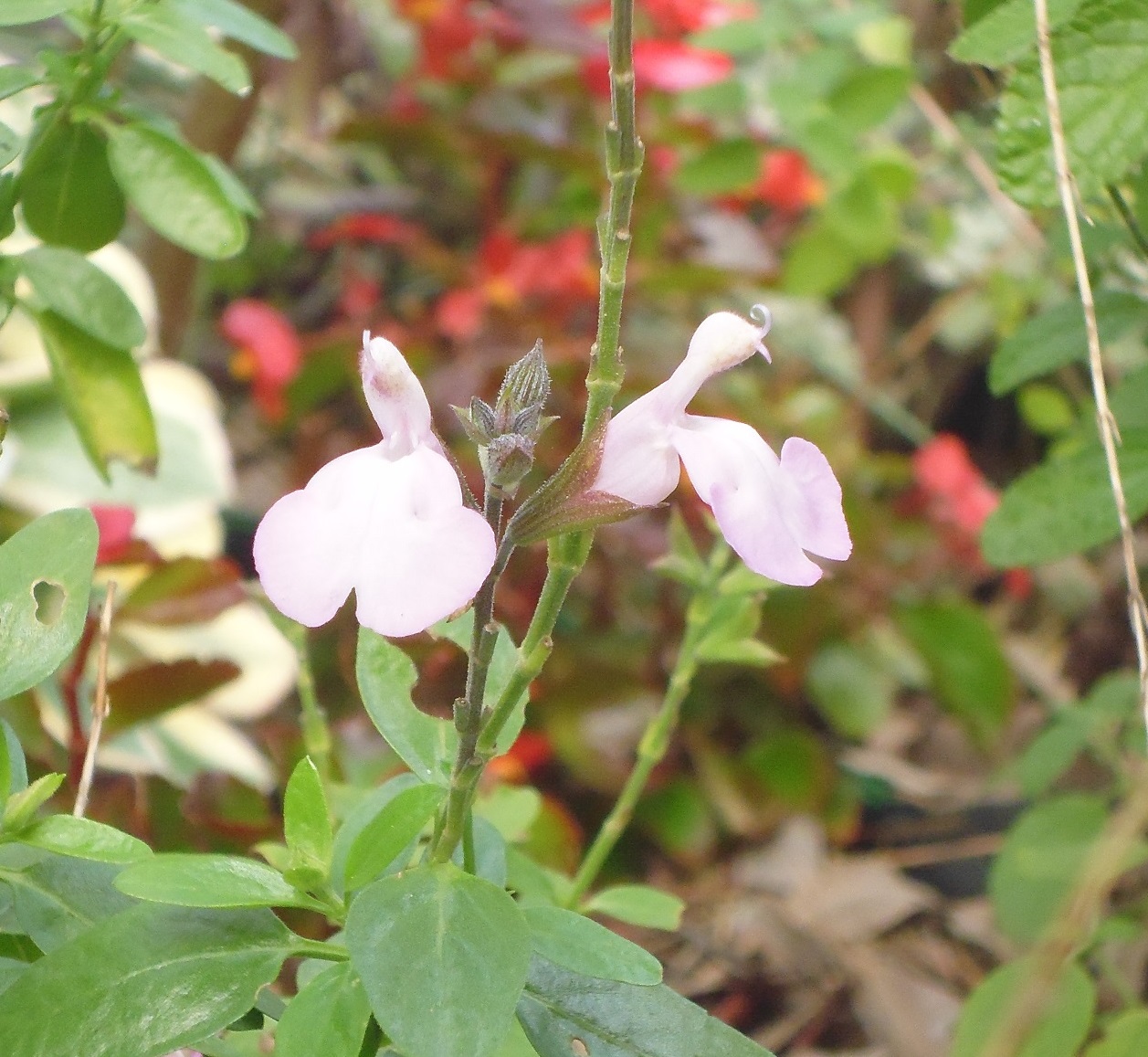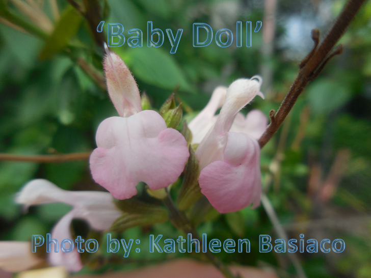 Salvia microphylla ‘Baby Doll’: A small compact subshrub, growing 40-60cm H for a sunny position with pale pink flowers most of the year.