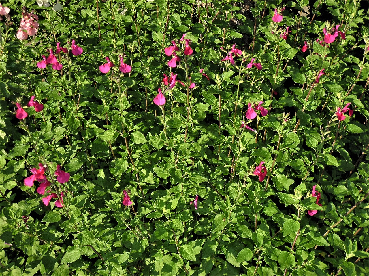 Salvia microphylla ‘Christine’s Surprise’: is a good back ground plant for small gardens. A very good filler plant between other perennials. It is always in flower until cut down. A very attractive plant to have in the garden. Easy to grow. It can expand gradually without becoming a problem.