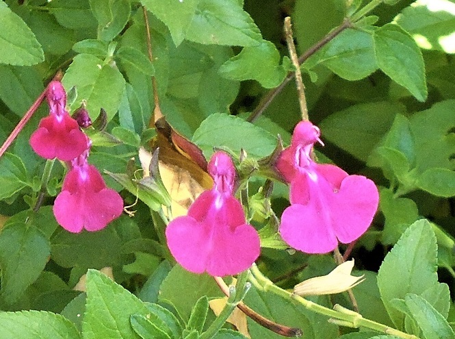 Salvia microphylla ‘Christine’s Surprise’: was originally bought as ‘Christine Yeo’, but developed into a lovely surprise.
