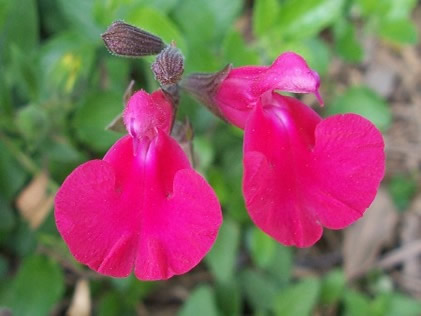 Salvia microphylla ‘Cyclamen’: is a small spreading sub shrub to 60cmH, with cyclamen coloured flowers for a full sun position.