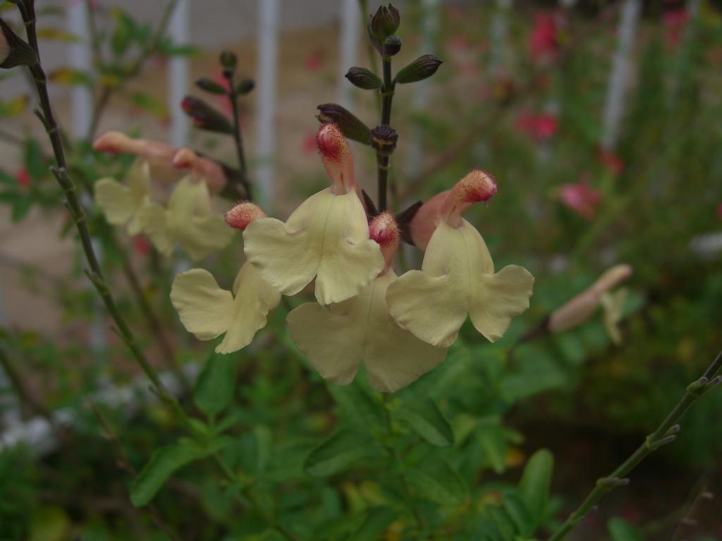Salvia microphylla ‘Easterbonnet’: A gorgeous upright small shrub, 60cmH with multicoloured yellow flowers, growing in full sun for most of the year.