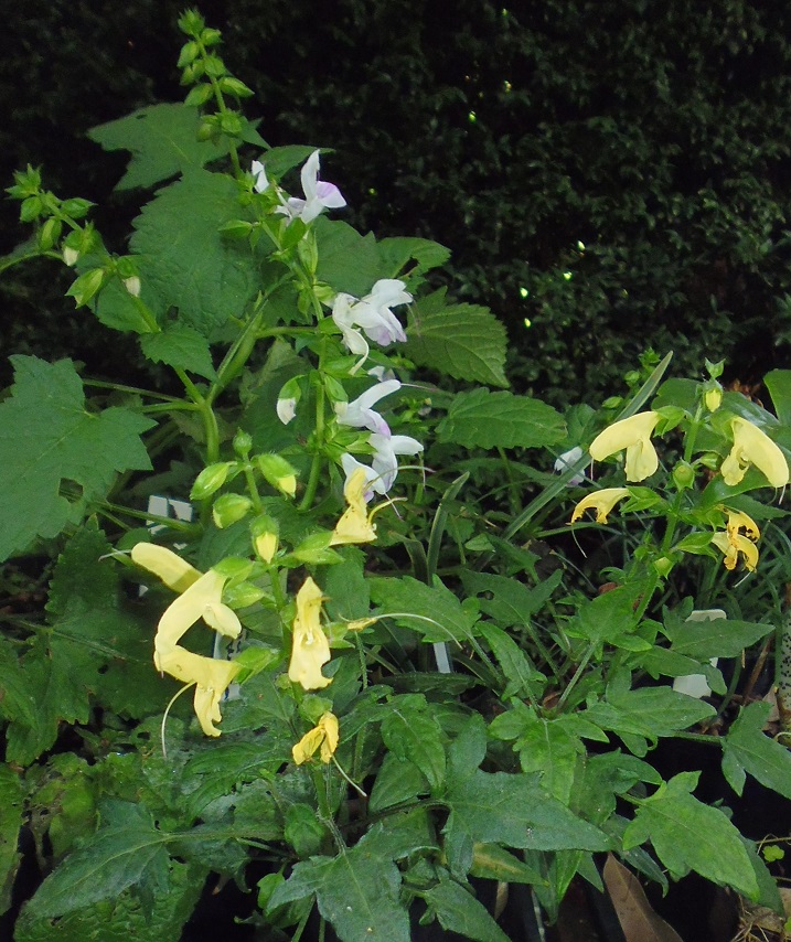 Salvia nipponica trisecta: is a small herbaceous perennial 10cmH with small trilobed leaves and pale lemon coloured flowers in autumn.