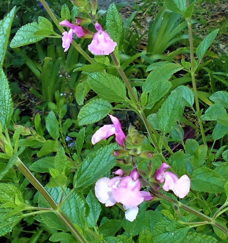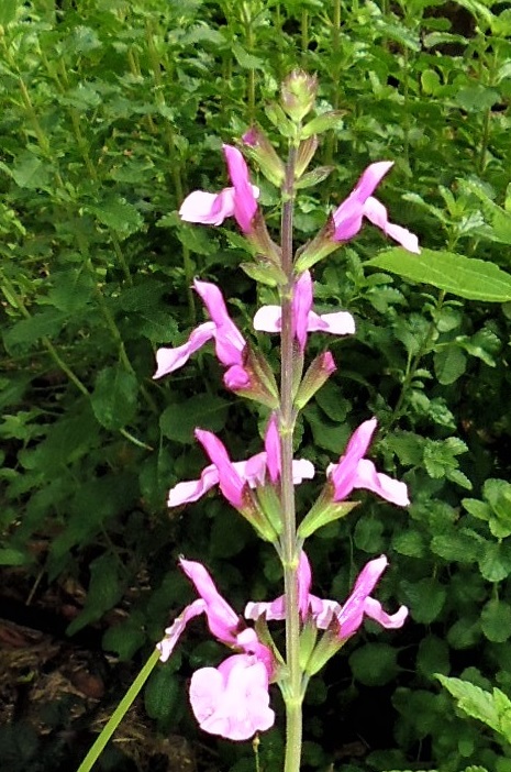 Salvia ‘Orchid Showers’ : is a bushy subshrub, 60-80cmH with stems of 2 tone pale pink flowers in spring, continuing through most of the year.
