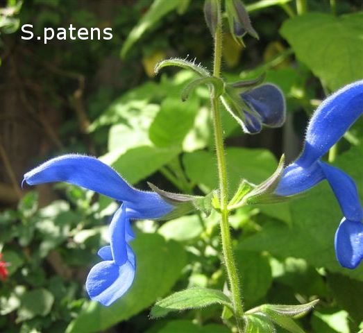 Salvia patens: is a herbaceous half hardy bushy perennial, 30 -90cmH, liking a sunny position with magnificent blue, pink or white flowers in summer.