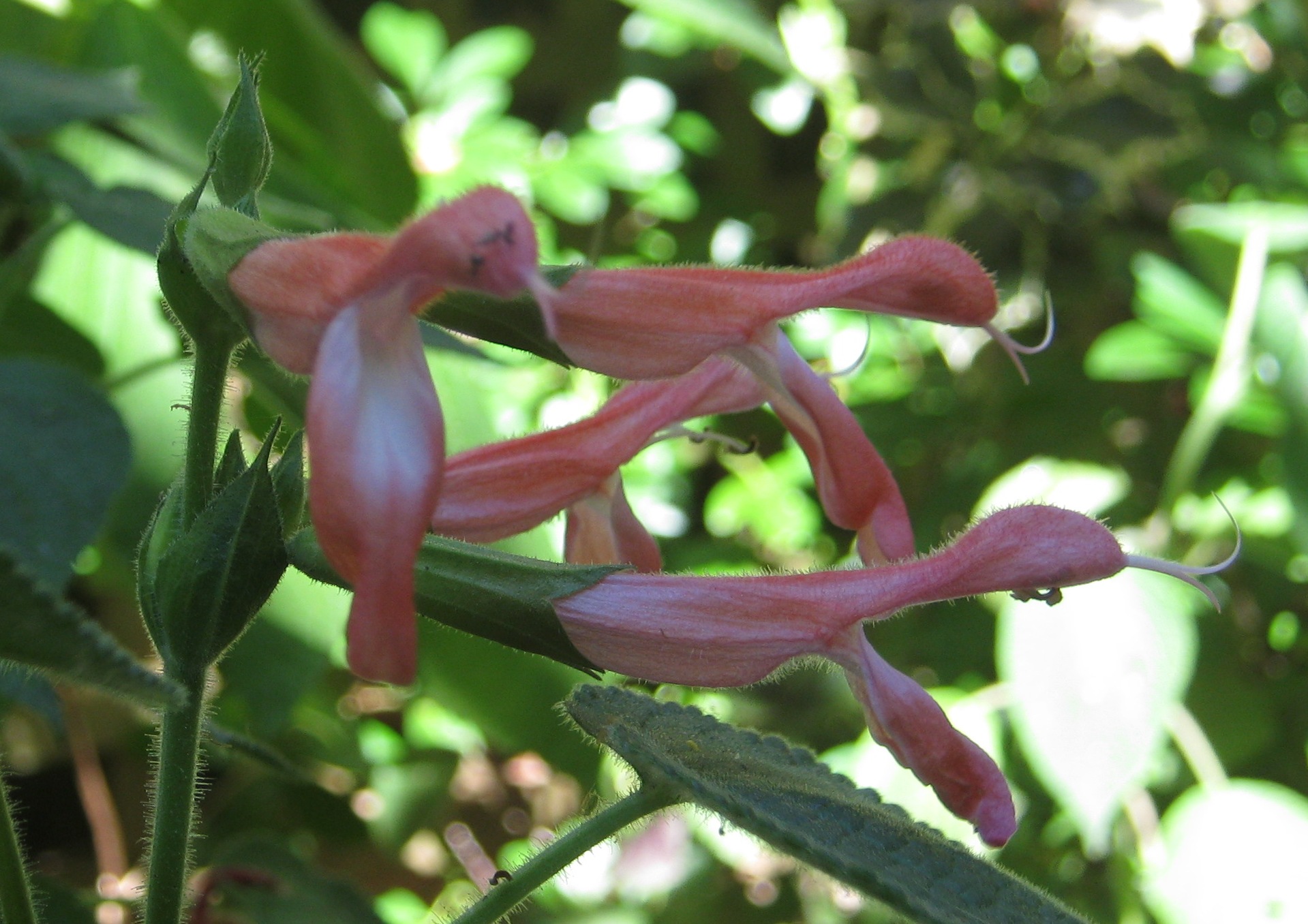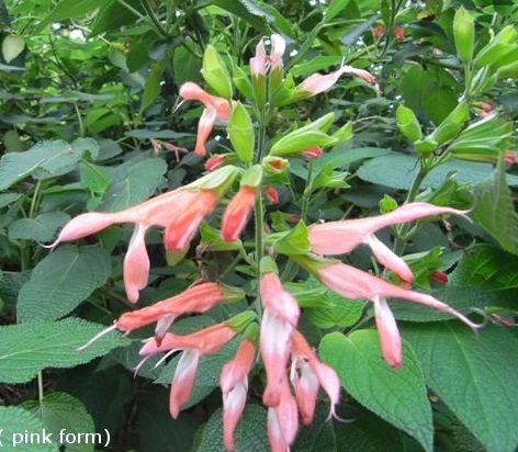 Salvia ‘Pink Parfait’ (gesneriiflora): is a tall bushy shrub 2.5-3mH for dappled shade with large pale pink flowers.