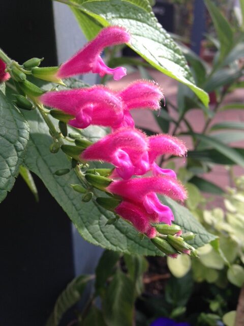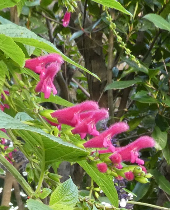 Although this Salvia comes from high in the Sth American mountains, it flowers all year in the suburbs and seems to flower in our Dandenong ranges for most of the year.