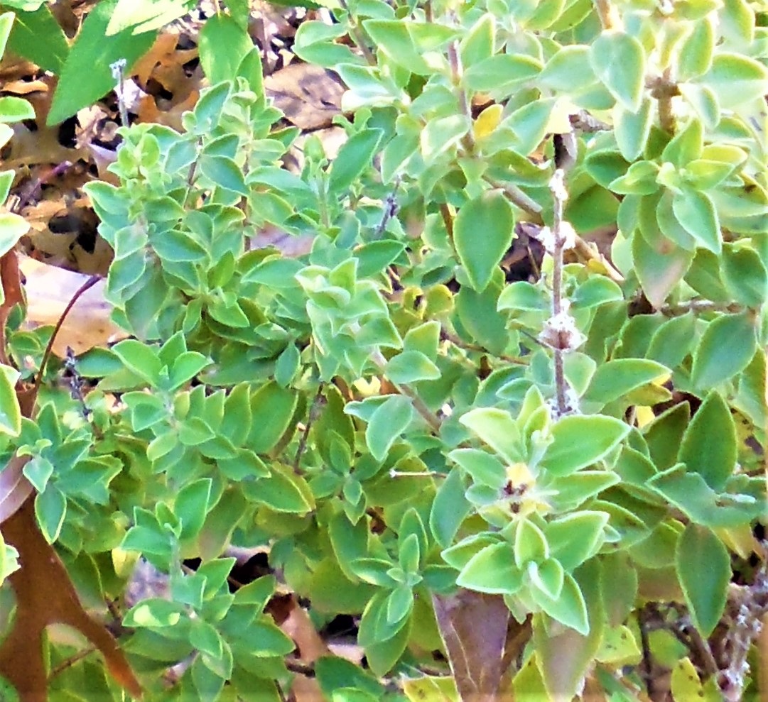 Leaves: begin, by looking like the parent with hairy lobed leaves, but these soon change with maturity to small smooth, leathery leaves with entire edges with a pointed tip.